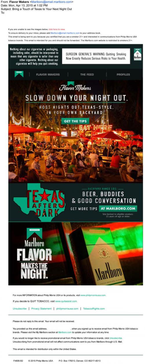 Flavor Makers email from April 2015 with links to the brand website for tips about hosting backyard parties.