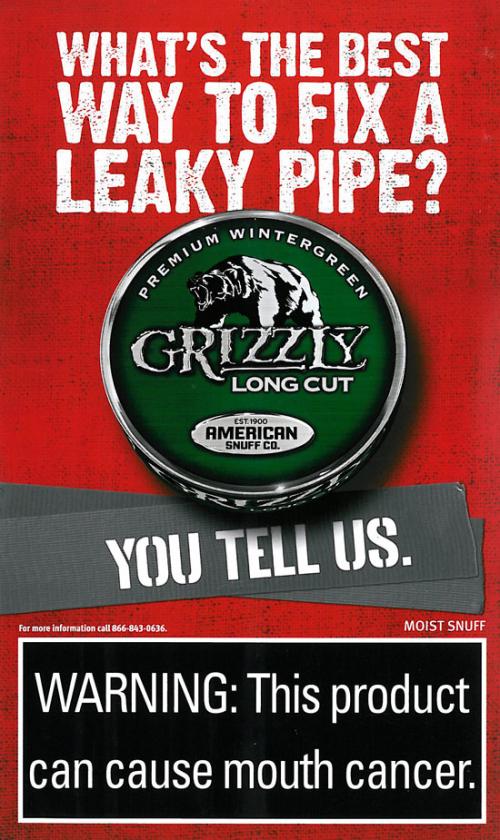 Direct mail received from Grizzly in February 2015 promoting the "Pro Tips" Challenge. Participants who share tips on the brand website are entered to win weekly prizes. the direct mail piece also includes two coupons. Text: "What's the best way to fix a leaky pike? You tell us." Direct mail received in SC.