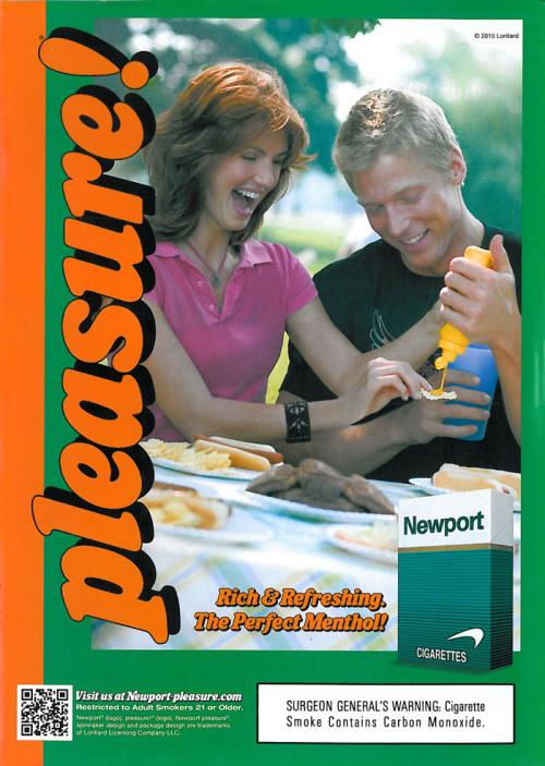 Newport Menthol magazine ad featuring a couple at a picnic. Includes a QR code to visit the brand website via mobile phone.