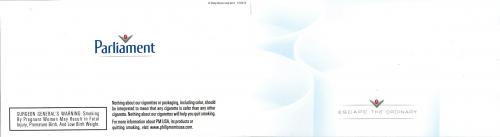 Direct mail from Parliament delivering coupons in December 2014. Invites the recipient to the brand website for exclusive content and offers; also wishes them a "Happy Holidays." Text: "Escape the ordinary"