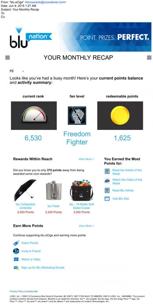 currently at a "Freedom Fighter" fan level. Shows the redeemable points