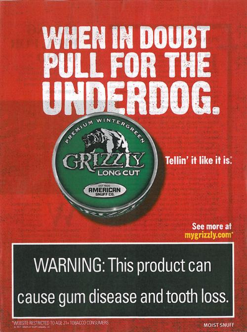 Magazine ad from Grizzly's "Tellin' it like it is" series. Text: "When in doubt pull for the underdog."