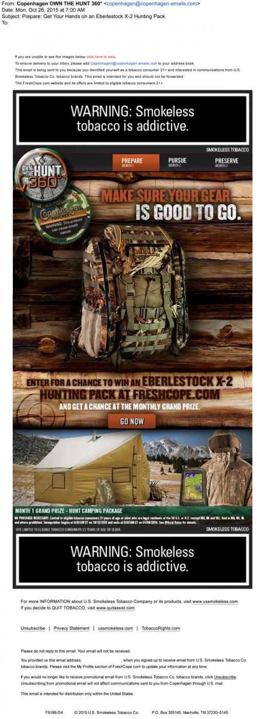 Copenhagen email from October 2015 featuring the latest hunting gear