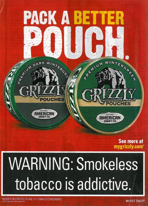 Grizzly ad promoting their pouch products, "Pack a better pouch."