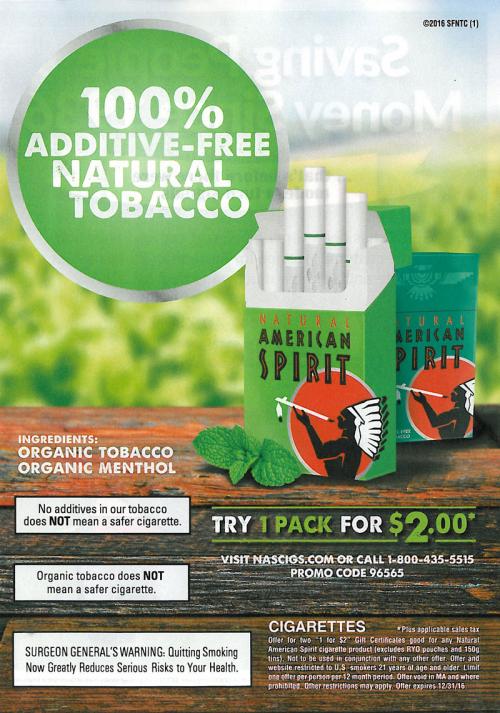 additive-free natural tobacco and including a code to get a pack for 2$. This ad suggests more of a field in the background image.
