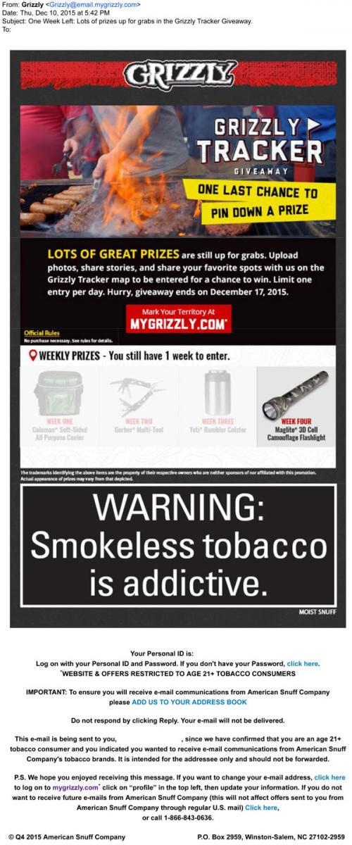 E-mail Smokeless Tobacco Sweepstakes
