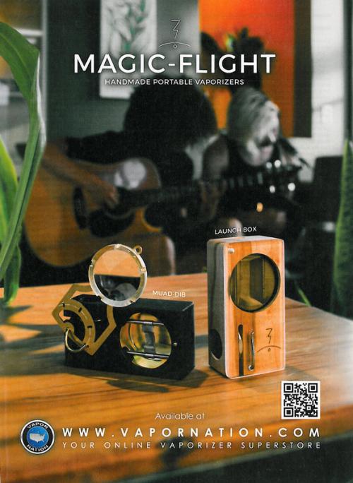 Magazine ad for Magic-Flight, handmade portable vaporizers. Ad invites readers to visit VaporNation.com, the online vaporizer superstore to purchase products. Ad found in: Rolling Stone: December 3, 2015