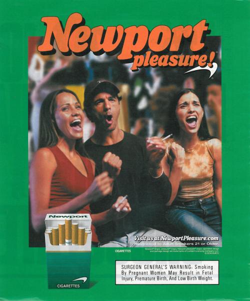 Newport ad showing two women and a man smoking and cheering at what might be a sports event.