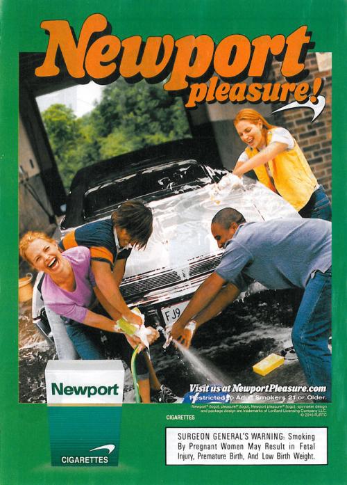 Newport ad featuring a group of friends washing a car. Ad found in:
