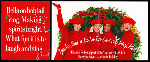 Direct Mail Virginia Slims Club. Red envelope with "The Holiday season is here... Open this up for some holiday cheer!"