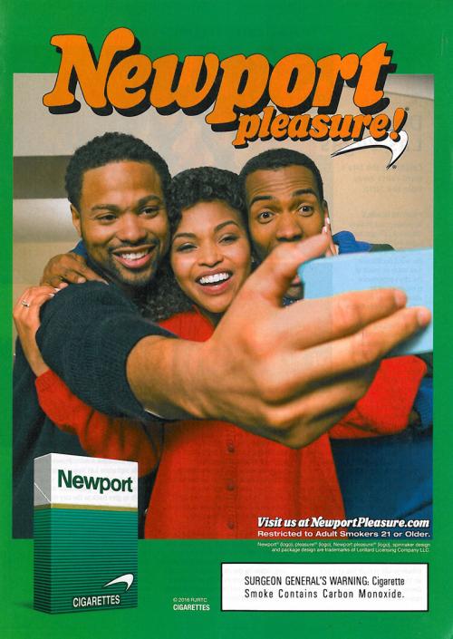 Ad for Newport with two African-American men and a woman posing for a selfie and smiling.