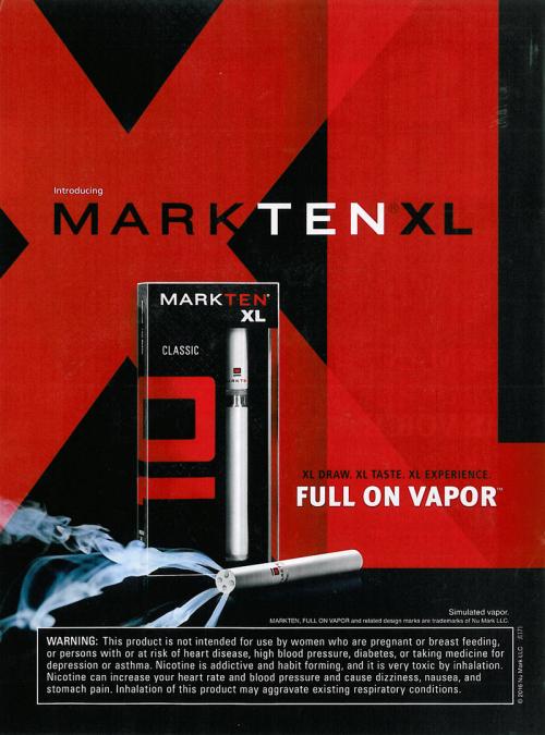 MarkTen magazine ad for their XL product. Text: \\\\\\\"XL Draw. XL Taste. XL Experience. Full on vapor.\\\\\\\"
