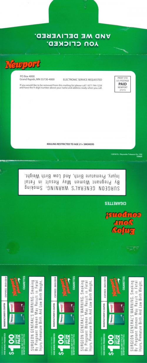 Newport direct mail from February 2016 containing coupons and promoting the Payday Everyday philosophy. Shows