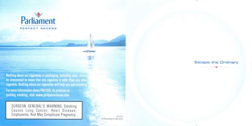 Direct mail from Parliament in June 2016 delivering coupons, promoting the brand website and relaxation. Text: "Escape the Ordinary"