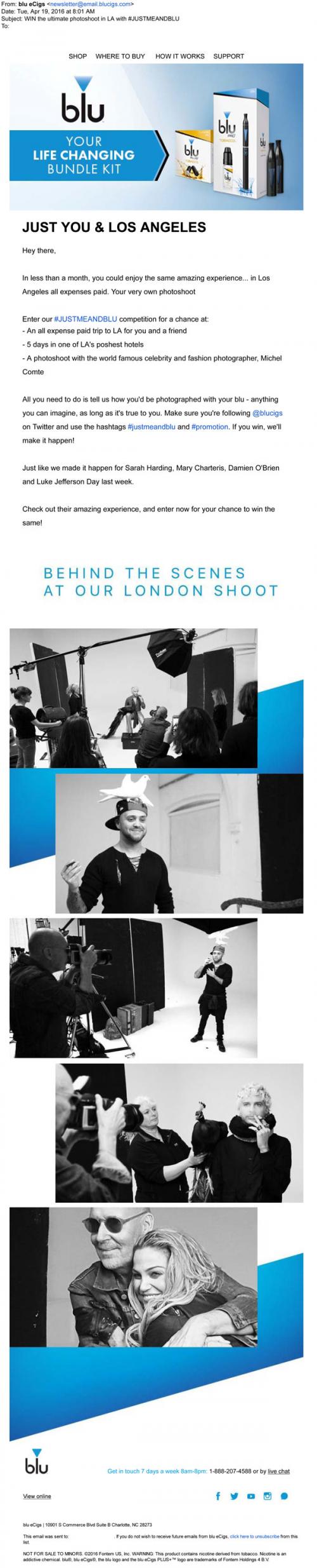 2016 announcing a chance to win a photoshoot in LA with #justmeandblu.
