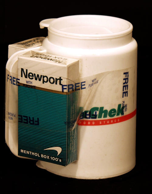 "Newport Menthol 100's. Free mug with purchase." White mug with logo.