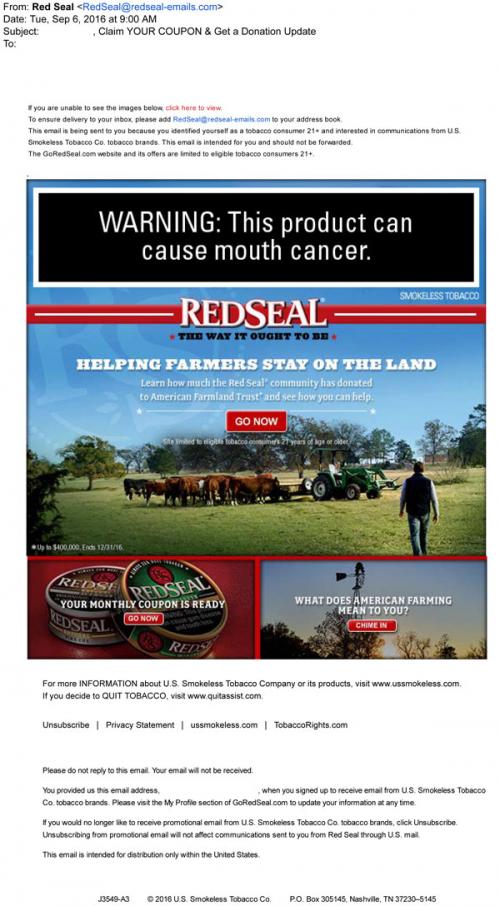 Coupon - Discount E-mail Smokeless Tobacco
