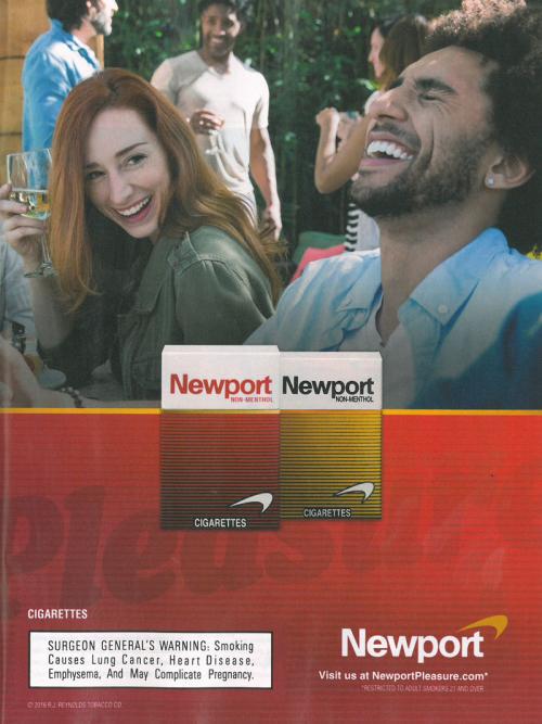 Non-menthol Newport ad showing men and women enjoying an outdoor party.