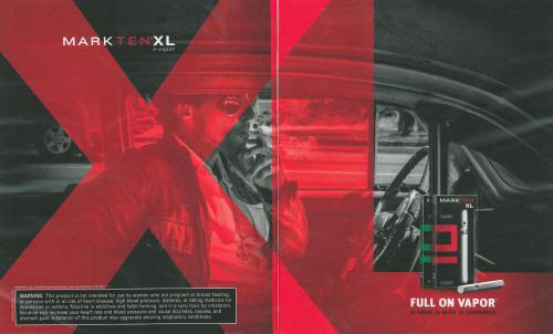 2 page ad for MarkTen XL with a man smoking in a car.