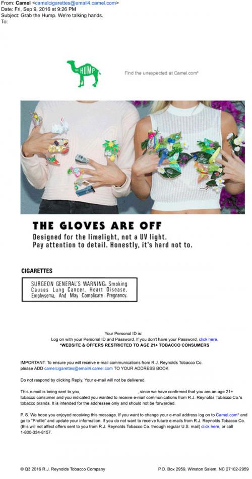 Camel email from September 2016 promoting the newest weird articles on The Hump, a special feature on the brand website every Wednesday.