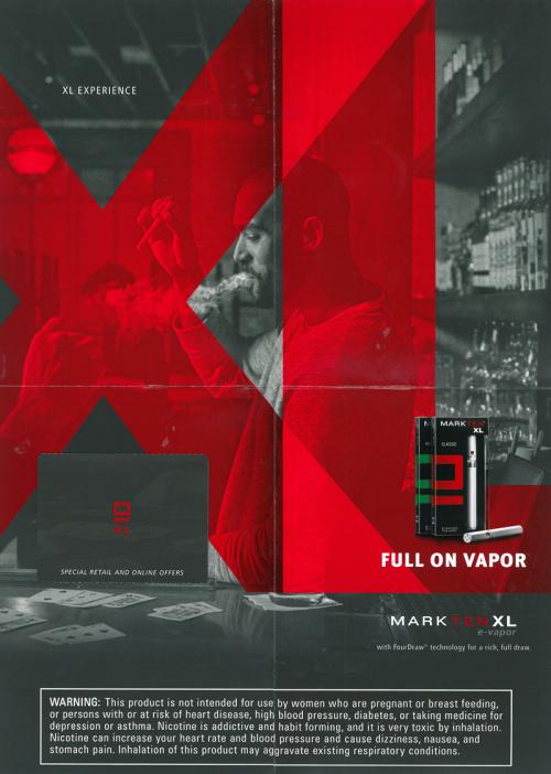 Direct mail from MarkTen in September 2016 to promote their XL product and deliver coupons, including an online discount. Image shows men at a bar playing cards. Text: "XL Draw. XL Experience."