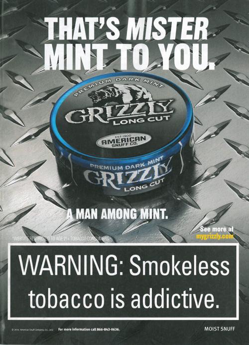 Grizzly magazine ad promoting their dark mint style, "a man among mint." Text: "That's Mister Mint to you."