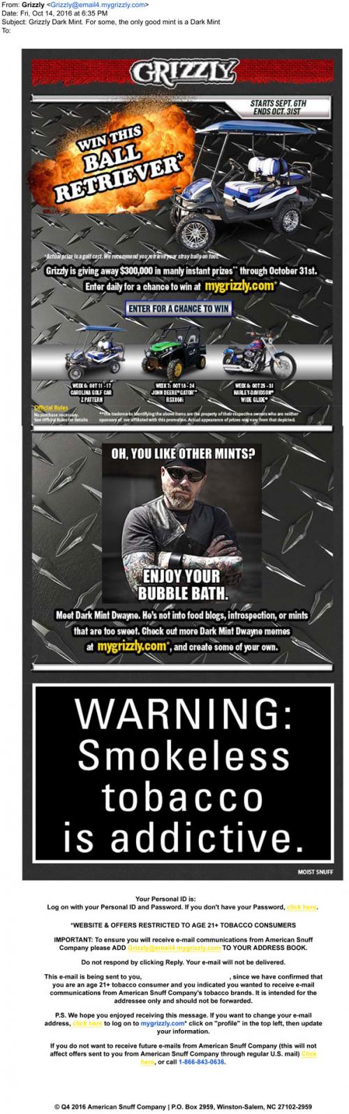 invitation to enter daily on the brand website. Also has a link to create a unique