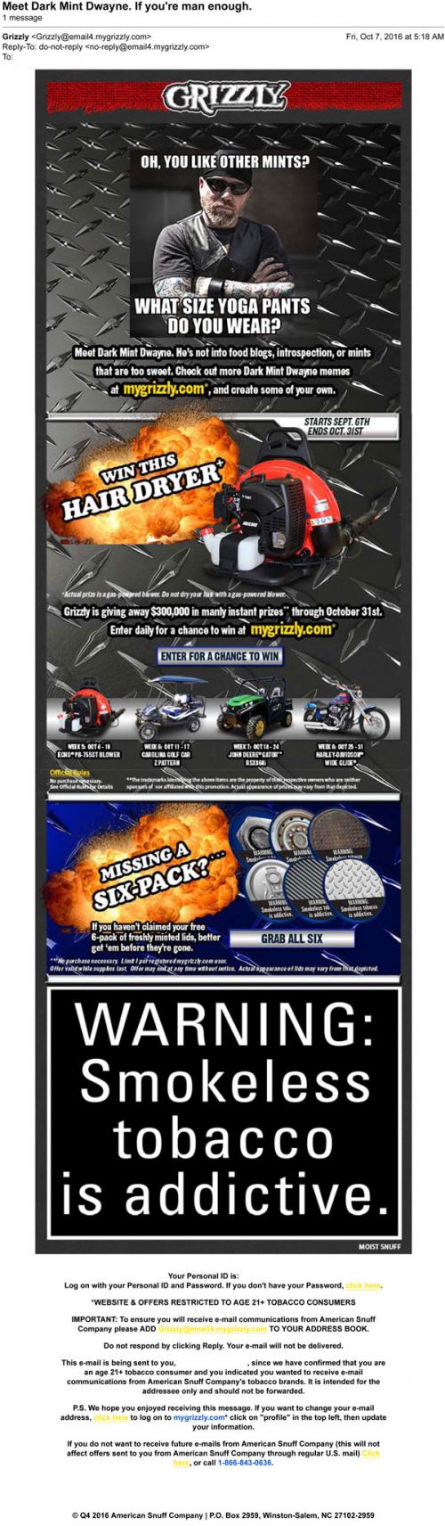 E-mail Promotions-Promo items/Gifts Smokeless Tobacco Sweepstakes