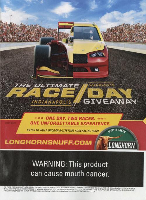 Ad-magazine/newspaper Smokeless Tobacco Sports-Motorsports/Racing Sweepstakes
