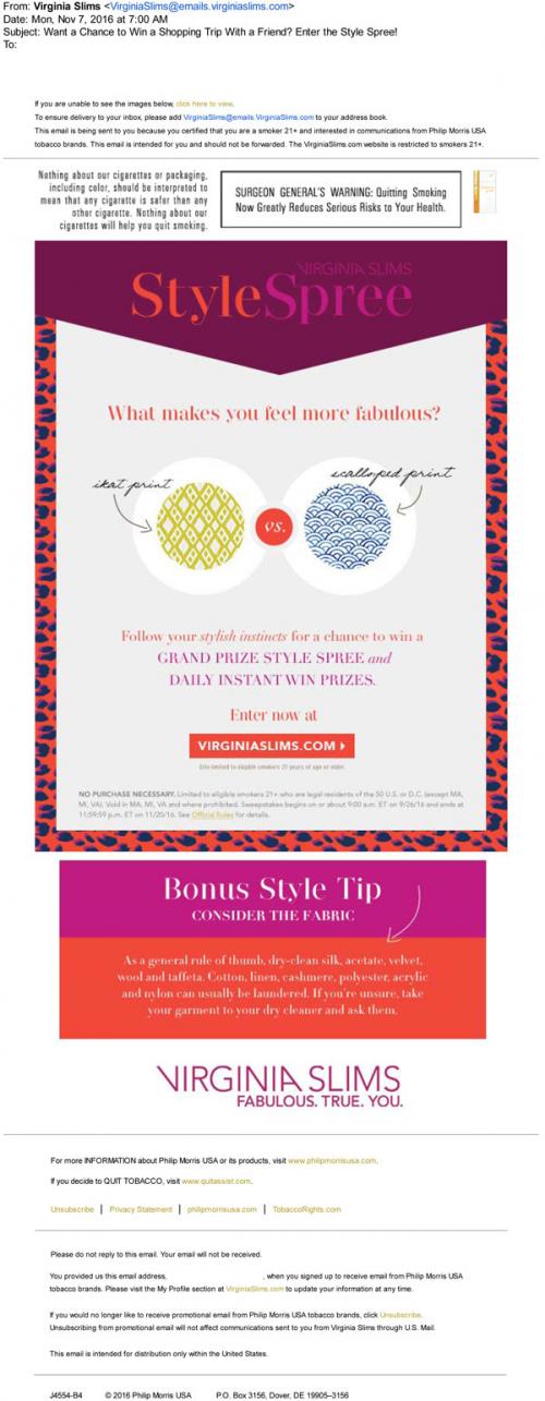 sweepstakes, with a link to the brand website to enter. Also includes a