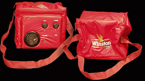 Red cooler with built in radoi. Winston logo on top flap.