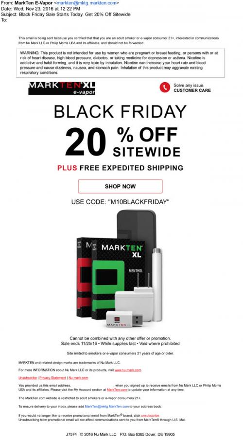 MarkTen email from November 2016 promoting their Black Friday holiday