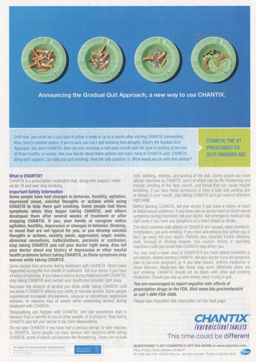 Chantix magazine ad for their prescription quitting aid that also introduces a Gradual Quit Approach plan, a new method used by doctors.