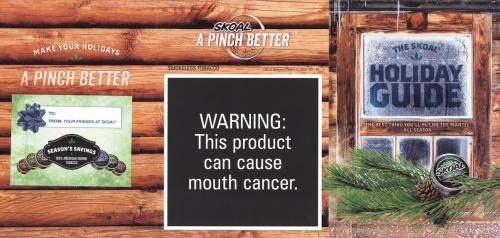 Direct mail from Skoal received in December 2016 to "make your holidays a pinch better" with the Skoal Holiday Guide and a coupon. Contains tips on how to have fun at holiday parties.