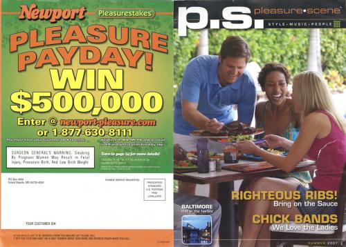The Summer 2007 Pleasure Scene controlled circulation magazine distributed by Newport. The mailing was distributed in a folder containing the magazine, coupons, and ads for their menthol and lights products.