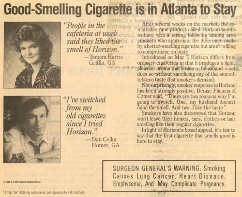 Ad for Horizon cigarettes, marketed as "the first cigarette