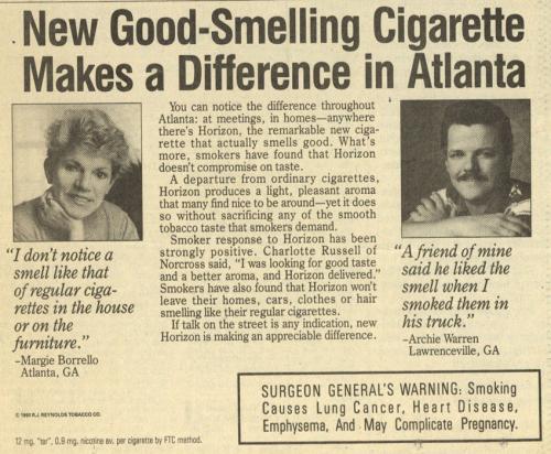 Ad for Horizon cigarettes, marketed as "the first cigarette