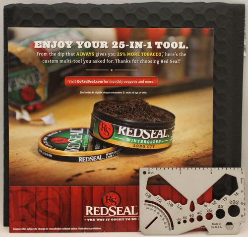 Direct mail received from Red Seal in May 2017 as a promotional gift. The 25-in-1 tool is wallet sized and arrived in a black bubble mailer with a card insert that thanks the recipient for choosing their brand.
