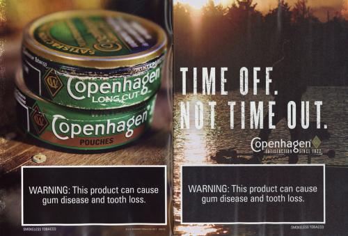 2-page magazine ad for Copenhagen promoting long cut and pouch wintergreen products. Text: "Time off. Not time out."