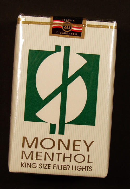 Money Menthol king size filter lights. Distributed by the Customer Co.
