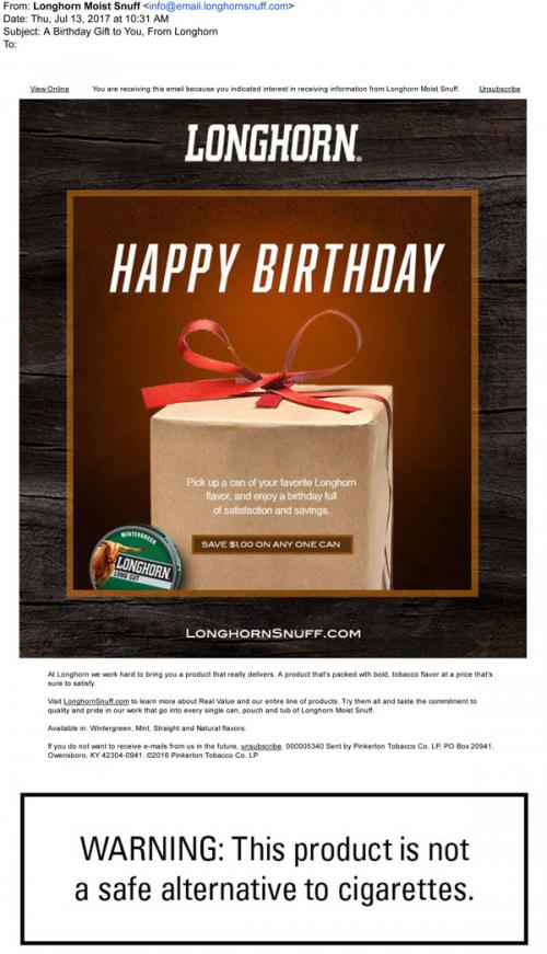 Coupon - Discount E-mail Seasonal/Holiday Smokeless Tobacco