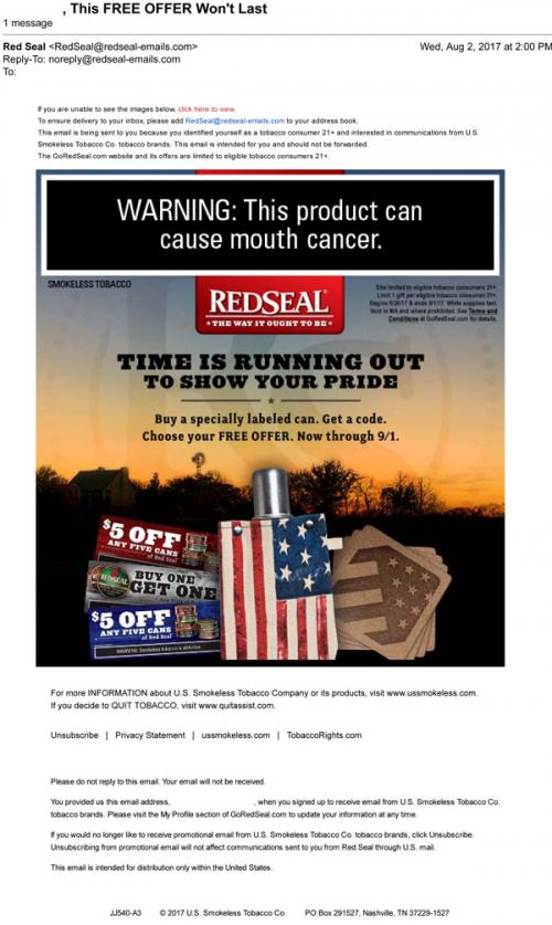 E-mail Promotions-Free Gift w/Purchase Promotions-Promo items/Gifts Smokeless Tobacco