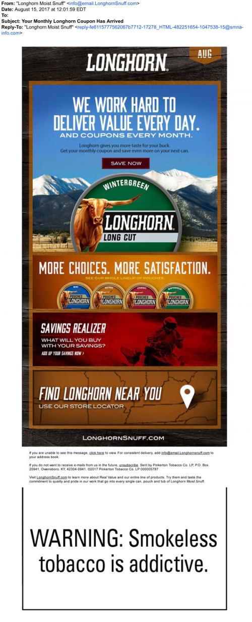 Coupon - Discount E-mail Smokeless Tobacco