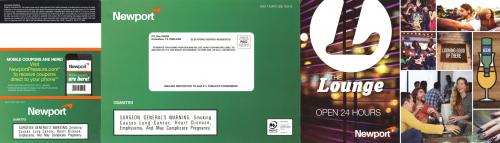 Direct mail from Newport received in August 2017 promoting the Lounge feature on the brand website, a social and interactive space to learn more about their products and to get lifestyle tips. Includes coupons and directions on how to claim mobile coupons.