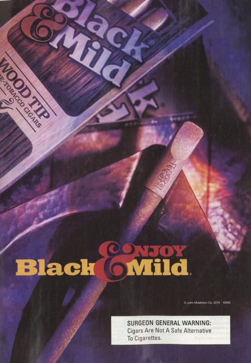 Magazine ad for Black & Mild highlighting their wood tip cigars.