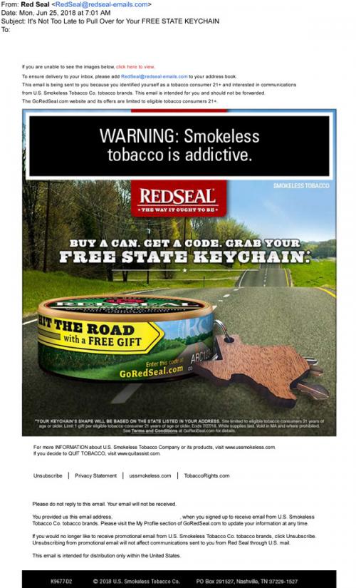 E-mail Promotions-Free Gift w/Purchase Promotions-Keychains Smokeless Tobacco