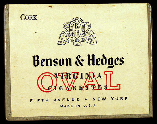 Hard box, Virginia cigarettes, cork tipped. 10 pack, oval.