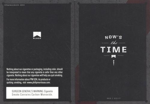 Direct mail from Marlboro Black received in August 2018 wishing the recipient a happy birthday. Reads "Now's the time" and "Be bold" and shows motorcycles and vehicles in a concrete ditch. Includes coupons.