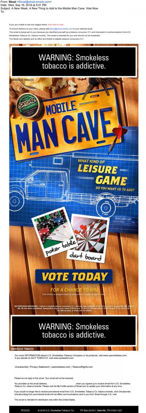 E-mail Smokeless Tobacco Sweepstakes