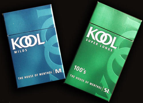 Kool - The House of Menthol - New trendy package for 2002. Bought near a college campus. Pictured Kool Milds in blue package and Kool Super Longs 100's in Green Package